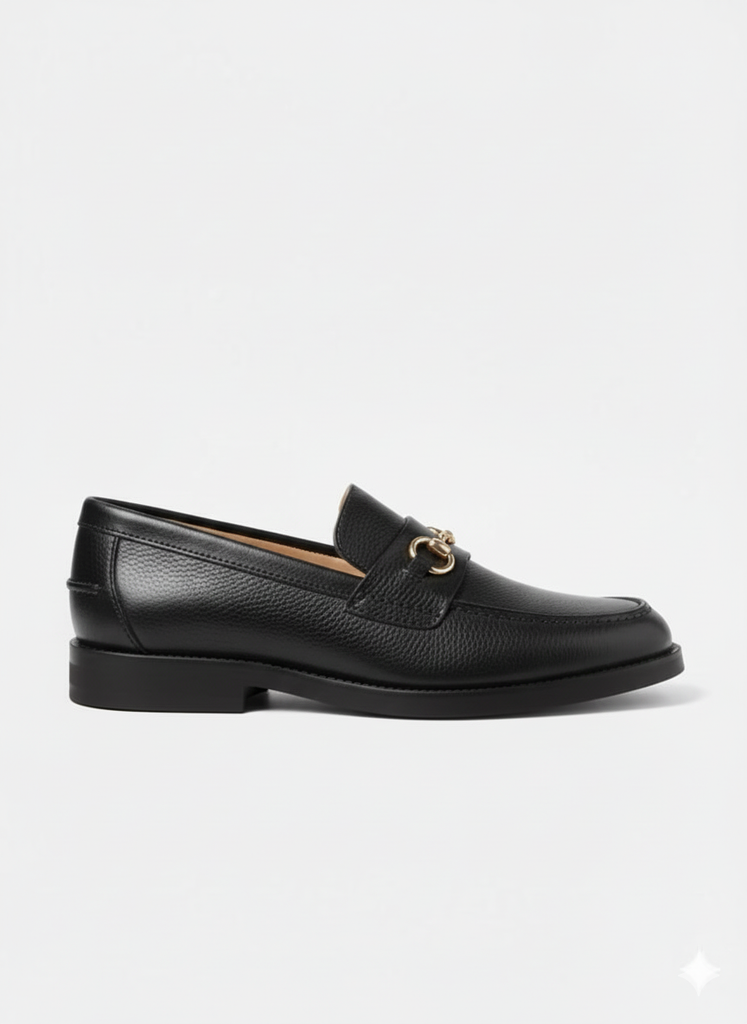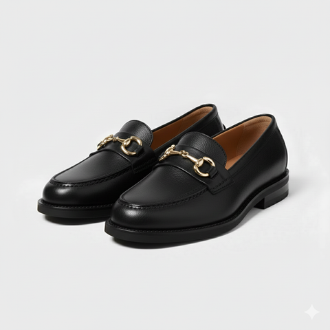 Step into sophistication with our Morgan Loafer, the epitome of modern refinement. Immerse yourself in the unparalleled quality of scotch grain leather, boasting a rich black hue. The subtle horse-bit accent adds a touch of luxury without compromising comfort.